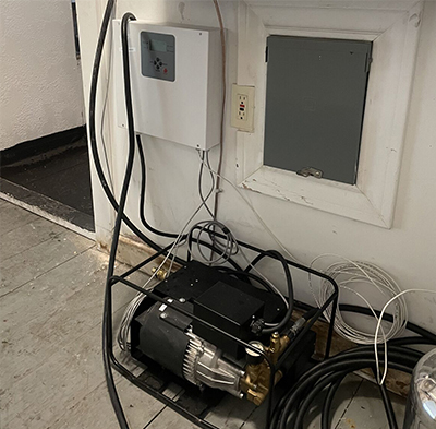 • Use the provided ¾” garden hose to connect to the pump inlet. The pressure should not be below 14psi and not above 100psi. The pump will draw 2.4GPM.