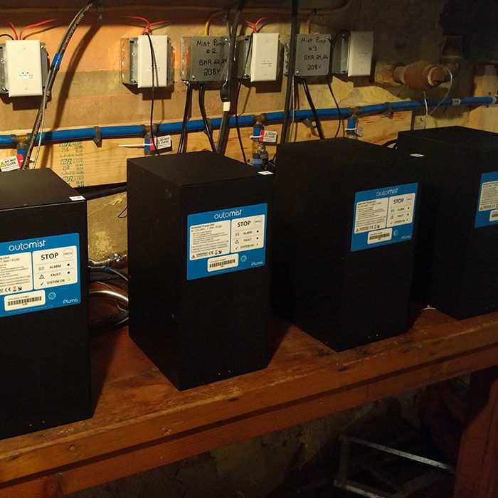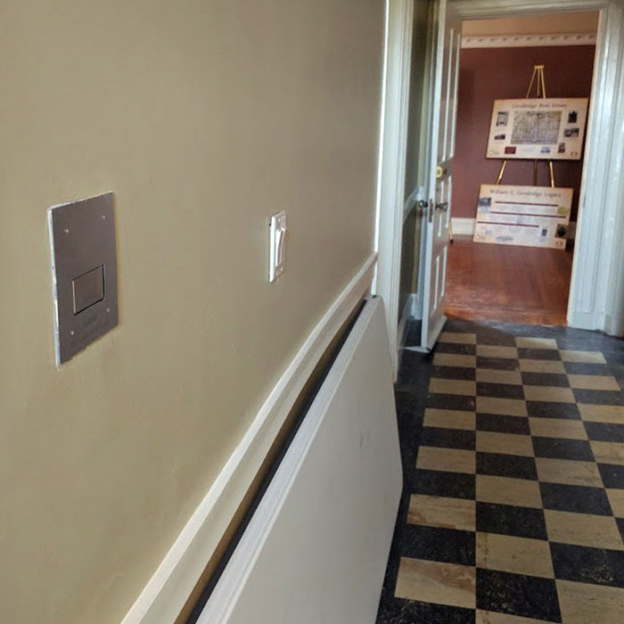 The Goodridge House is an existing IIIB building with mixed Use Group A-3/B. The main floor serves as a museum displaying period specific items that belonged to the house, with office space above. Automist met two performance based objectives: minimizing water damage, and limiting temperature. Automist was selected due to its fast response time and the efficiency with which mist is applied to a fire. The use of heat detection and IR sensing identifies the location of a fire more precisely than other suppression systems. Mist is then delivered directly to the fire much earlier which limits temperatures from reaching critical points and eliminates the need for excess water.